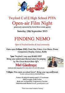 A special Open-air family movie night showing Finding Nemo will be held at Twyford School this Saturday.