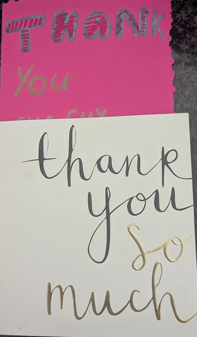 It is quite touching when people go to the trouble of thanking for a small service and I am very grateful to the two who did, one with a clearly handmade card. Lovely!