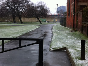 The pictures tell their own story. Deserted playgrounds and empty streets. Chiswick shivered in unseasonal snow showers today (April 4) as the weather continued to frustrate residents hoping for spring.