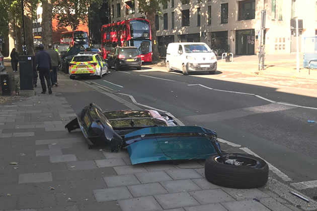 Debris from the car was placed on the pavement near the scene. Picture: ChiswickW4.com