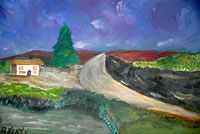 • Reggie Kray, 1933-2000, oil on card of a hillside landscape with cottage in the foreground, signed, bearing H.M. Prison Parkhurst stamp and