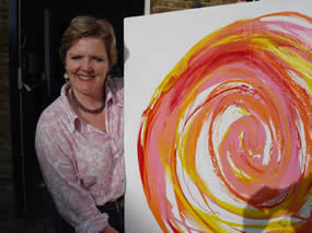 Artist Susan Forsyth will hold a silent bid auction of one her large abstract paintings to raise funds for the 'Send a Cow' charity - which provides livestock direct to African people.  "I hope to raise enough to send several flocks chickens (£60 for a flock) - which will provide much needed income for poor families in Africa" she says "Women are able to provide for their families and work their way out of poverty by becoming more self-sufficent".