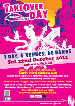 Oxjam is Oxfam’s national music festival which, between the various venues across the UK, is now the biggest music festival in the UK. All money raised goes to help the charity which focuses on three main objectives: emergency response, campaigning for change, and development work worldwide. This is the first Oxjam to be held in Chiswick and the group of local volunteers running the show hope it could become an annual event.