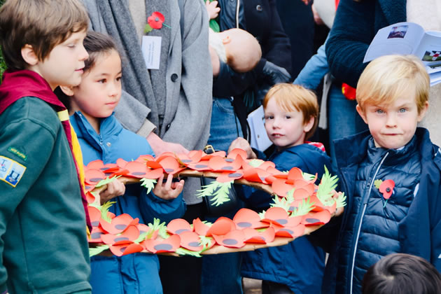 Local scouts present a wreath at a previous Remembrance Sunday in Bedford Park