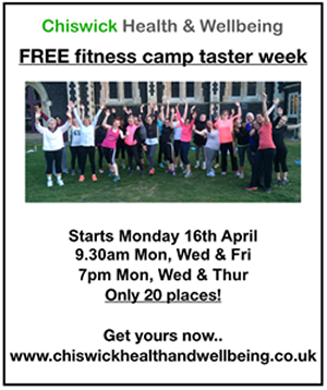 If you are interested in coming down to taster week and trying out the fitness camp, all you need to do is go to www.chiswickhealthandwellbeing.co.uk and enter your name and email in the box on the page and you will secure your place.