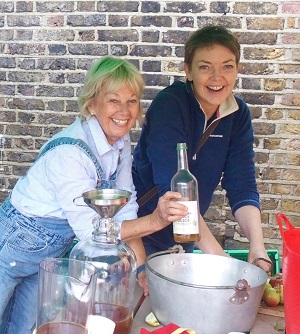 ( Friends members Elsa Pawley and Milly Mills on the apple juicing stall where hundreds of apples were cut up and juiced. )