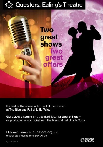 Two top shows are coming to The Questors Theatre and you can get 20% discount on a standard ticket for one of the shows when you book tickets for the other - or on production of your ticket for the other.
