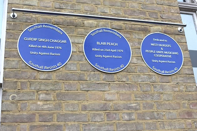 The plaques paid tribute to Gurdip Singh Chaggar, an 18-year-old student murdered in a racist attack in 1976 and Blair Peach, an anti-racist school teacher who was killed in anti-National Front demonstrations in the town 1979.