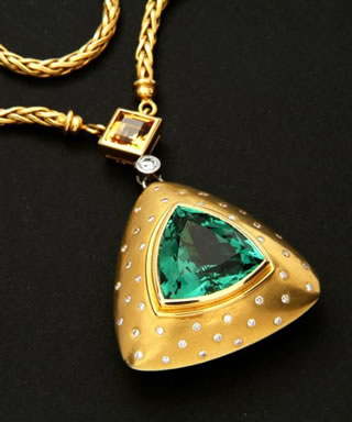 Green Tourmaline pendant in Yellow Gold with Diamonds and imperial topaz. ... £ 17,000 |