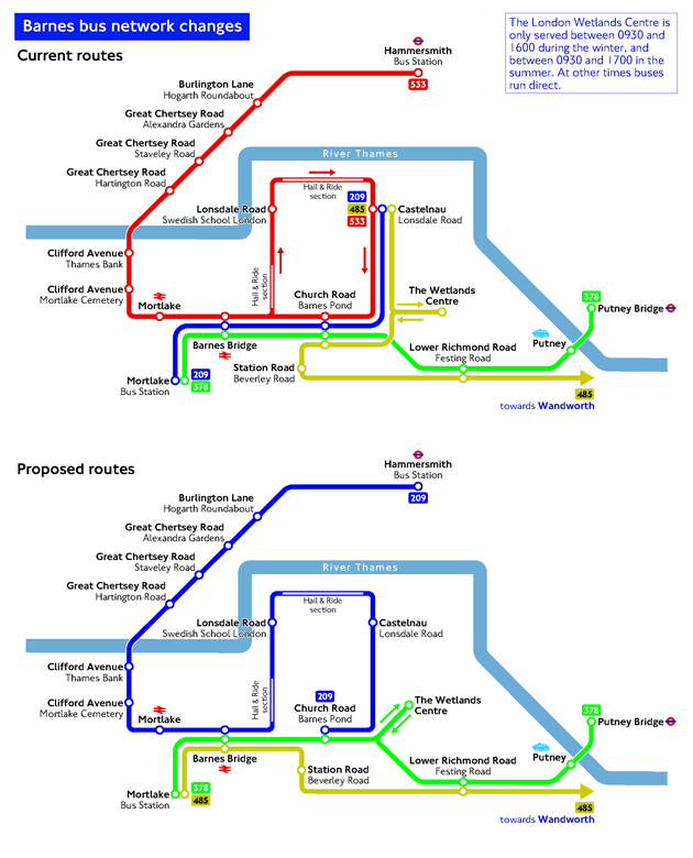 • Telephone: 020 3054 6037 (quote "Barnes bus changes")