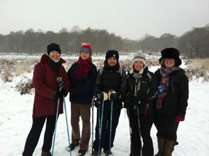 | one happy dog catching snow flakes! | appropriate weather for this bunch of nordic walkers in Richmond Park |