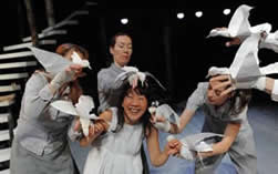 Based on the Brothers Grimm's fairtales, with a number of grim scenes in which the ugly sisters have gtheir eyes pecked out and hack at their toes and heels to fit into Cinder's slippers, the children's play is dark, stark and beautifully designed.