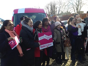 Labour's pink 'Woman to Woman' bus brought with it Diane Abbott MP and Baroness Oona King of Bow who were met by Julian Bell, the Leader of Ealing Council, practicing GP, Dr Onkar Sahota and London Assembly Member for Ealing and Hillingdon. and a crowd of non-politicians including mums, dads, babies and buggies.