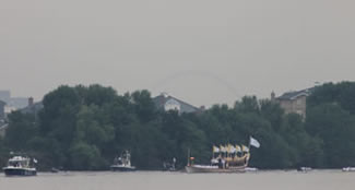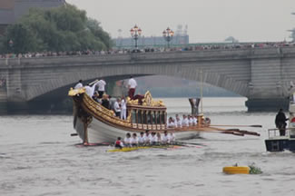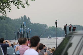 | Crowds on Putney Embankment | Patriotic supporters and unusual forms of transport! |