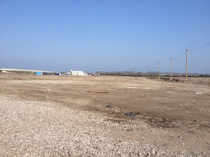 The South half of the ‘Jungle’ now barren but previously full of shelters, services and a busy main street.  The Eritrean Church, youth centre and library in the distance.