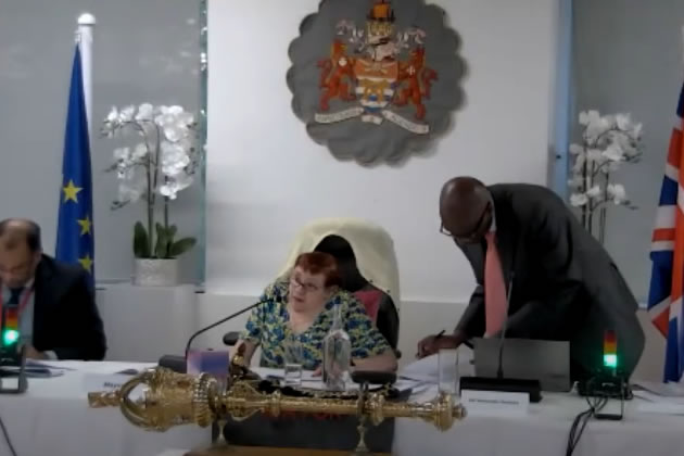 Cllr Patricia Quigley was forced to suspend the meeting for 5 minutes. Picture: YouTube