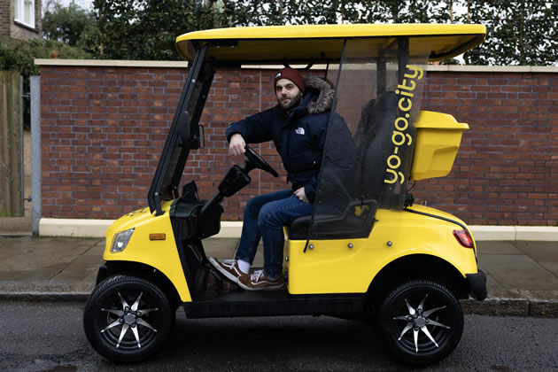 Adrian sets off in the electric buggy from Parsons Green. Picture: Facundo Arrizabalaga/MyLondon