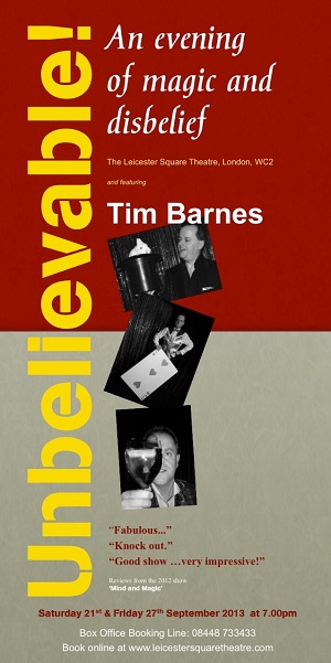 Brentford-based London Magician, Tim Barnes, is pleased to announce a brand new show at the Leicester