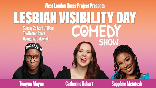 West London Queer Project (WLQP) is hosting a comedy event to mark Lesbian Day of Visibility on 26 April, the final day of Lesbian Visibility Week. This week is dedicated to increasing the visibility of lesbian, bisexual, queer women, and non-binary people within the LGBTQ+ community.