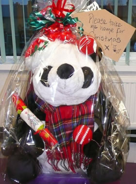 The panda, complete with its own Christmas cracker and scarf, was donated to the mayor of Merton Councillor Brenda Fraser to raise money for her charities, the Avanti Club and Age UK Merton.